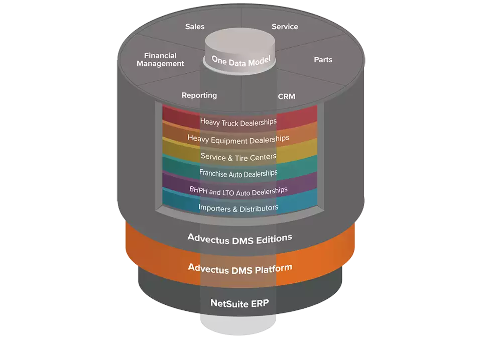 Gestiona todas las operaciones de tu distribuidora o grupo automotriz desde una sola plataforma en la nube con Advectus, el Dealer Management System (DMS) nativo de Oracle NetSuite, implementado estratégicamente por Netsoft, líder en soluciones empresariales en Latinoamérica.
